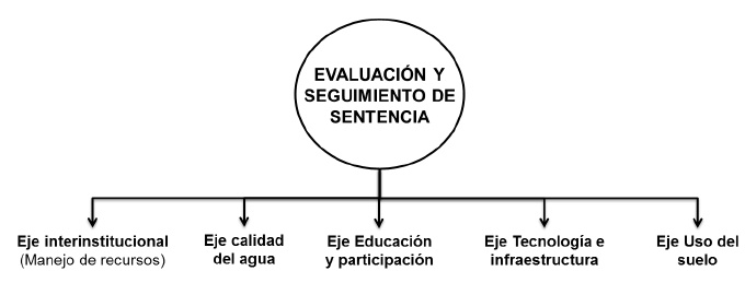 4. No existe una politica de Estado frente a la contaminación del rio Bogotá. Se carece de control efectivo sobre el vertimiento de las aguas por parte de las industrias y la población. Todo ello ha convertido al Rio en una "cloaca", sin capacidad de depuración, y lo ha inutilizado como corredor vial, sin que hasta la fecha exista acto administrativo, ni judicial que obligue a las entidades demandadas a ejecutar una solución concreta e integra para solucionar el problema.