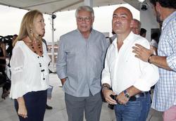 Kike Sarasola (derecha), con Felipe González y su esposa, Mar García Vaquero.![]()