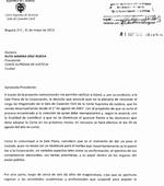 A través de la presente comunicación me permito ratificar a Usted, y, por su conducto, a la Sala Plena de la Corporación, la decisión que anuncié ayer en la plenaria de renunciar al cargo de Magistrado de la Sala de Casación Civil de la Corte Suprema de Justicia, que he venido desempeñando desde el 1° de agosto de 2007. Con el propósito de que se surta el proceso encaminado a la selección de quien deba reemplazarme y, según lo anuncié, con la finalidad de contribuir a que no se disminuya el quorum frente a las decisiones que debe adoptar la Corte en los próximos meses, mi renuncia se hará efectiva el día 30 de agosto del año en curso.