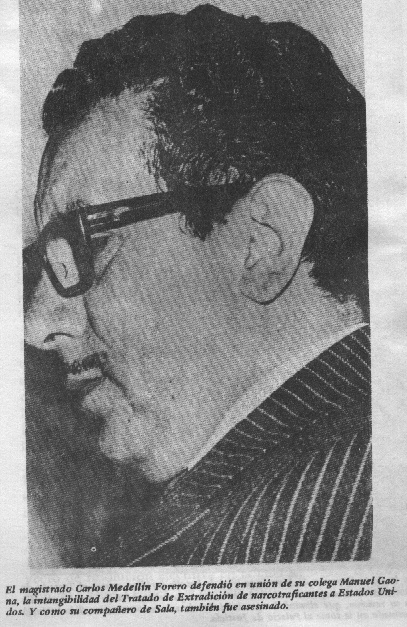 La verdad es bien distinta. El procurador había sido abordado por el mismo Escobar Gaviria quien lo había visitado dos meses antes en su despacho en horas de la noche--, los hermanos Ochoa Vásquez, Gonzalo Rodríguez Gacha y José "Pelusa" Ocampo.