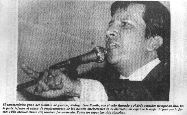 Reveló también que una propuesta suya al Consejo de Ministros, consistente en expedir un decreto legislativo (con las facultades del Estado de Sitio) para castigar con cárcel el enriquecimiento ilícito o sin causa, al igual que a los testaferros, fue rechazada por el gobierno. ¿Y qué haremos entonces con los evasores de impuestos?, habría sido la primera objeción que formuló en esa reunión el ministro de Hacienda, Luis Fernando Alarcón Mantilla.