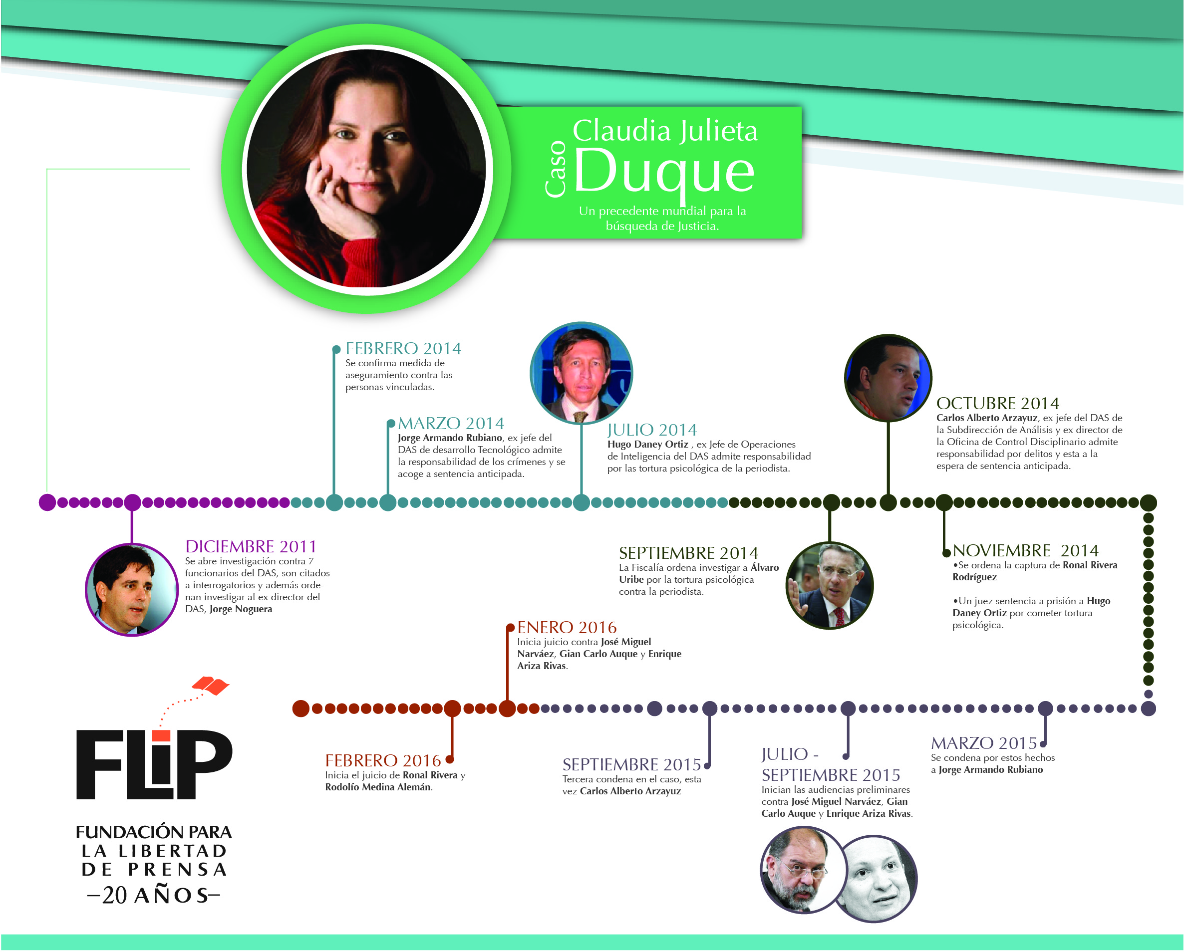 - Former state security agent convicted in torture of Colombian journalist Claudia Julieta Duque