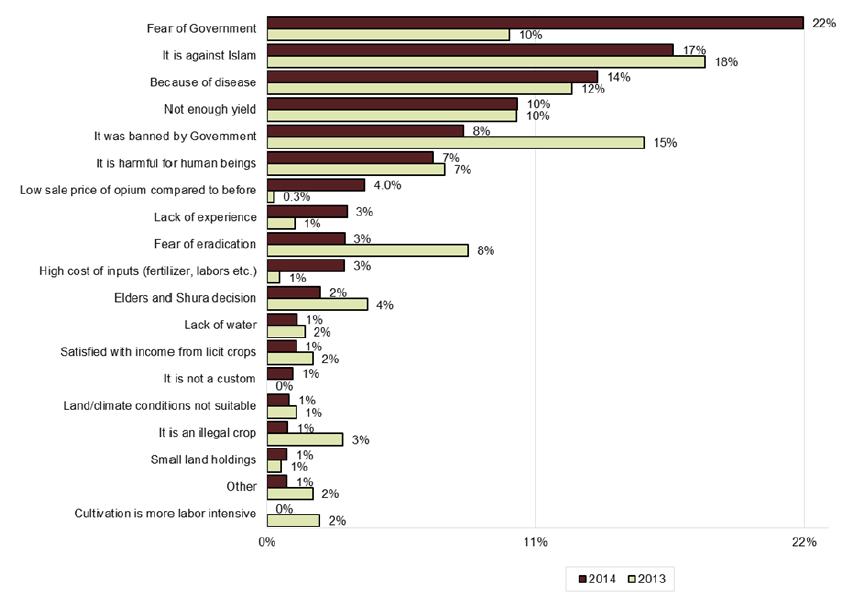 Figure 14: Reasons for ceasing opium cultivation in or before 2013-2014