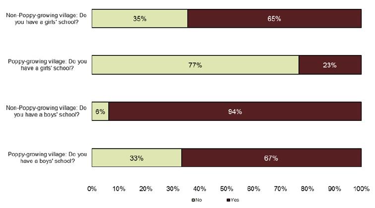 Figure 17: Access to boys' school and a girls' schools in the Eastern, Southern and Western regions, by poppy-growing status, 2014