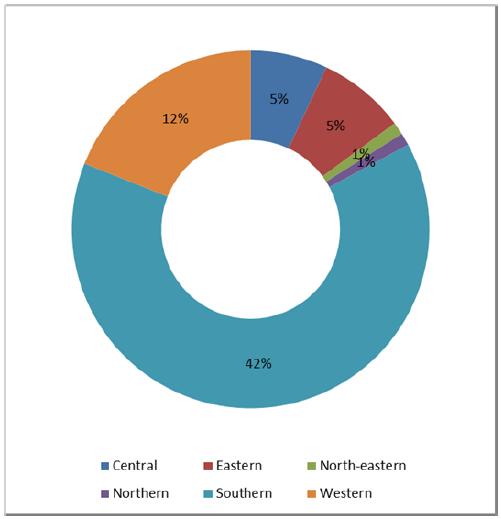 Figure 15: Percentage of farmers who reported disease as a reason for ceasing cultivation, by region, 2014