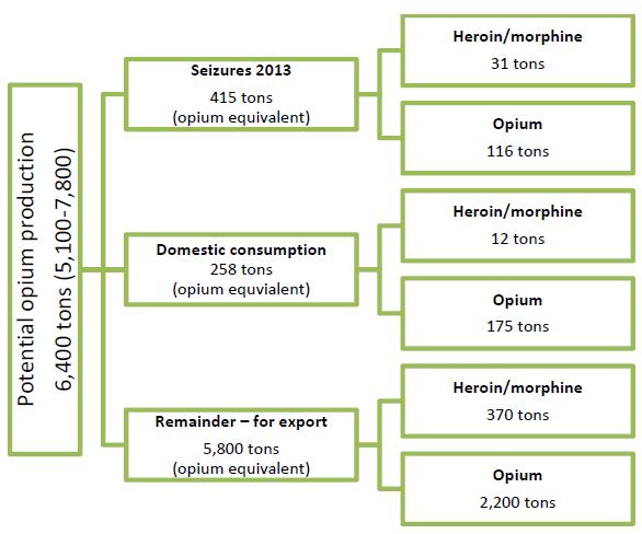 Figure 24: Opiates in Afghanistan, by destination, 2014