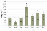 Figure 5: Farm-gate value of opium production in Afghanistan (current price), 2008-2014 (US dollars per kilogram)