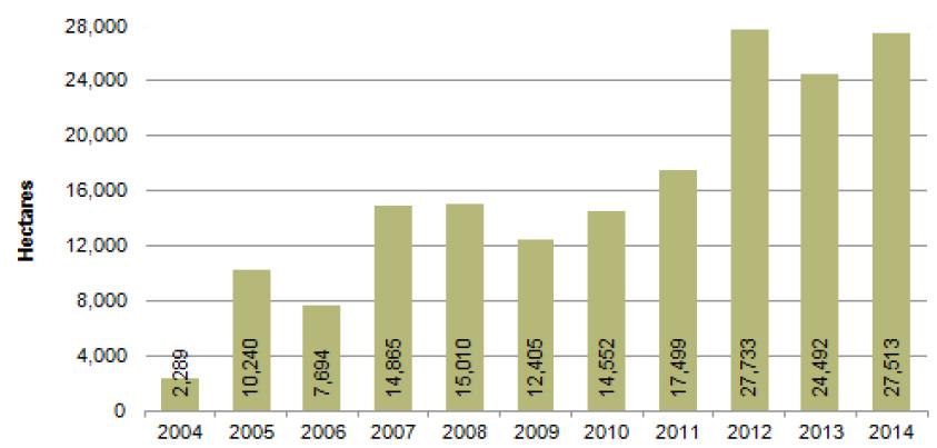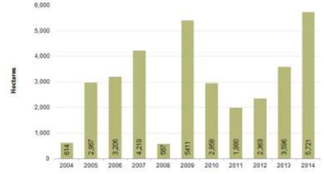 Figure 5: Opium cultivation in the Northern region, 2004-2014 (Hectares)
