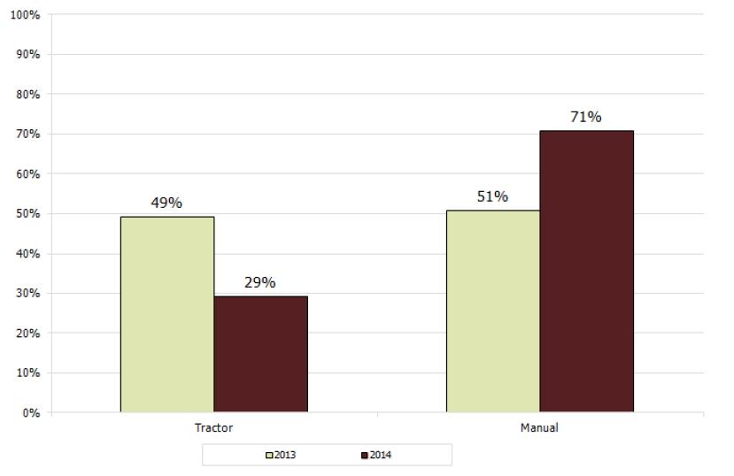 Figure 11: Area of opium poppy eradication, by different methods, 2013-2014 (Percentage of total)
