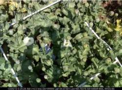 Satellite image (infra-red) Field photograph (natural colour) Natural colour aerial photographs acquired from helicopters were co-related with the satellite images to identify poppy from other crops, as shown below.
