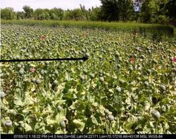 Visual interpretation was used to delineate opium poppy fields by interpreting IKONOS images covering a 10 km by 10 km area. Ortho-rectified IKONOS, QUICKBIRD, WORLD-VIEW2 and GEO-EYE images of 1 m resolution and 0.5 m resolution (PAN-sharpened) were used for this purpose. Opium poppy was initially identified using first-dated high resolution images. Ground truth information collected in the form of segment maps and GPS points was also useful in identifying opium poppy fields. The interpretation based on first-dated images was improved using patterns of observation in second-dated images. Aerial photographs of the poppy fields were acquired using helicopters in the provinces of Kandahar and Hilmand during the eradication season, as well as in Kabul, Kapisa, Kunar, Laghman and Nangarhar provinces during the flowering and capsule stages. These photographs were tagged by latitude and longitude and facilitated to locate the poppy areas on satellite images, and were very helpful in confirming the poppy areas in the satellite images. Poppy field boundaries in 2012 were delineated by an onscreen digitization method.