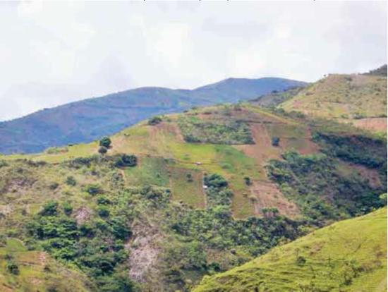 LOCALIZACIÓN Región: Yungas de La Paz, próximo a la localidad de San Félix, Municipio de Coripata ALTITUD 1000-2000 msnm PENDIENTE DEL TERRENO Ondulado de 15 - 35 grados ETAPA DE DESARROLLO FOLIAR DEL CULTIVO Cultivo de coca en crecimiento CRITERIOS DE INTERPRETACIÓN VISUAL DESCRIPCIÓN EN LA IMAGEN LOCALIZACIÓN DE LA IMAGEN CON PIXPOINT TERRESTRE TONO/COLOR Verde veronés contrastado con tonalidades de marrón TEXTURA Granular fina FORMA Polígono regular TAMAÑO Superficie de 0,16 ha (menor a un Cato |41| de los Yungas de La Paz) PATRÓN Agrupación de parcelas regulares ASOCIACIÓN Ninguna CONTEXTO Cerca del camino vecinal circundada por otras parcelas de coca y árboles OBSERVACIÓN La parcela se halla en un valle angosto y la altura promedio de la planta de 0,30 m aproximadamente. IMAGEN PLÉIADES, ESCALA1:1500