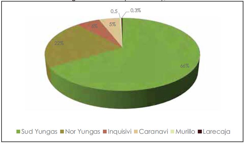 Figura 12. Distribución del cultivo de coca porprovincias en los Yungas de La Paz (14.000 ha), 2015