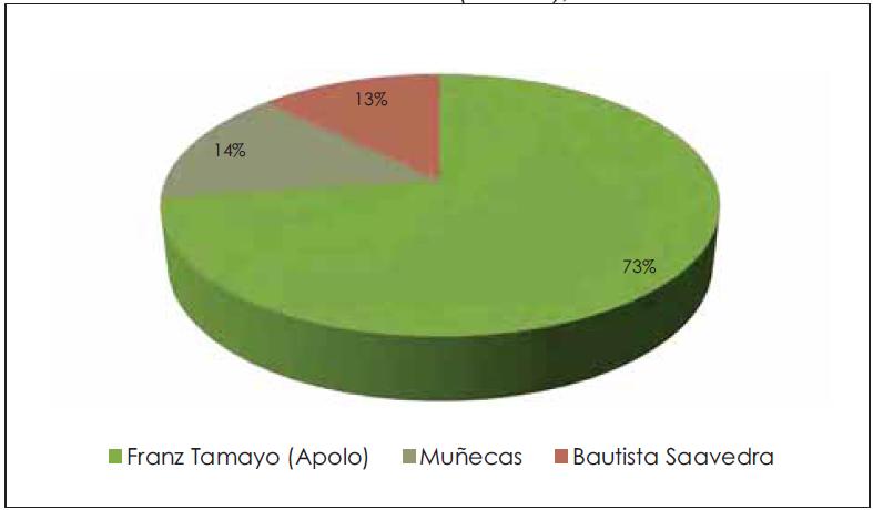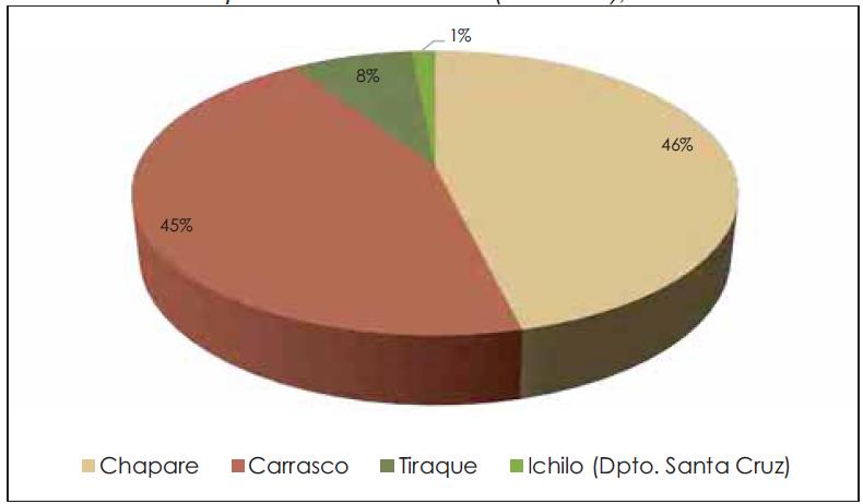 Figura 15. Distribución del cultivo de coca porprovincias en el Trópico de Cochabamba (6.000 ha), 2015