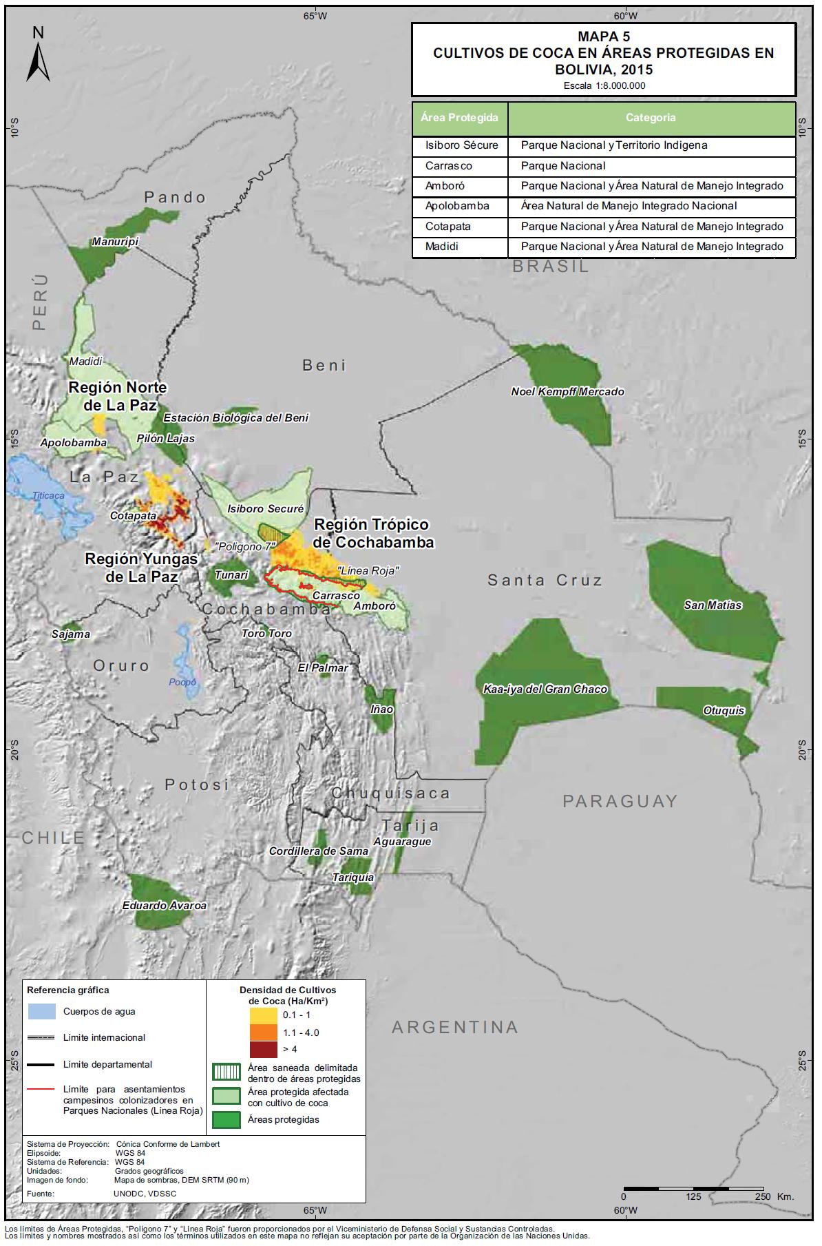 Tabla 5. Áreas Protegidas de Bolivia afectadas con cultivos de coca