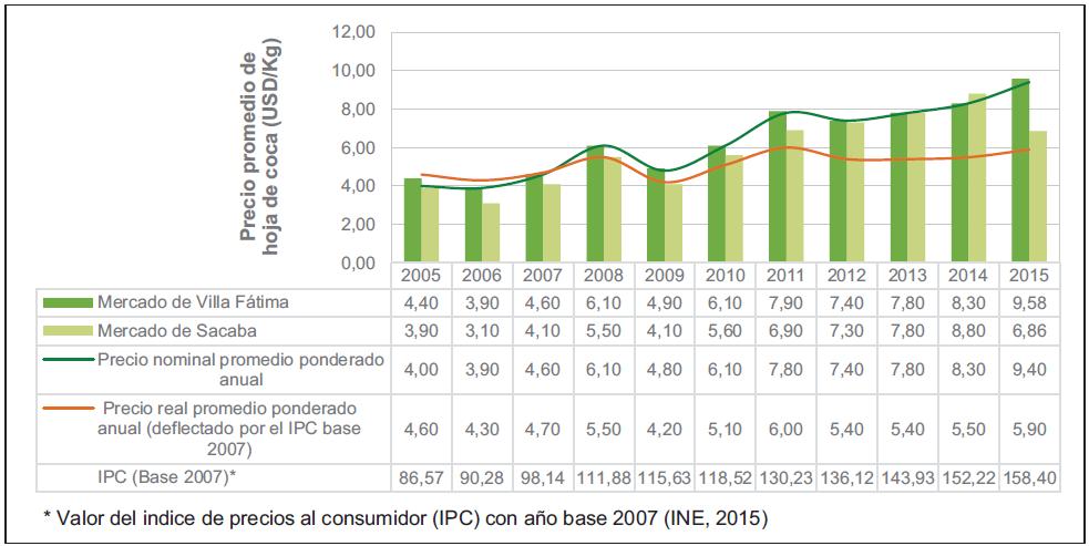 6. Este valor fue calculado utilizando los precios nominales de los mercados legales de la hoja de coca en Bolivia [Volver]