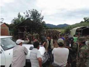 Verificando una parcela de coca, población de Alto Lagunillas, Municipio de Villa Tunari; (Foto: UNODC, Abril 2016)