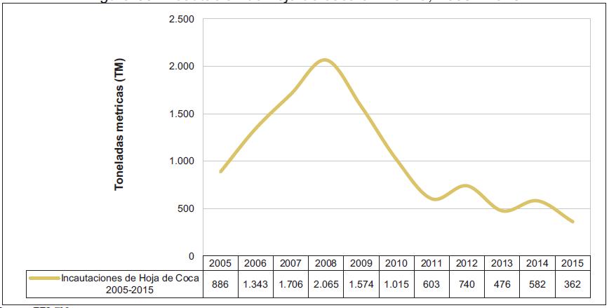 Figura 33. Incautación de hoja de coca en Bolivia, 2005 -2015