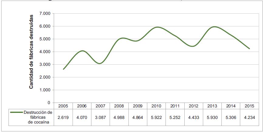 Figura 38. Destrucción de fábricas de cocaína, 2005 -2015