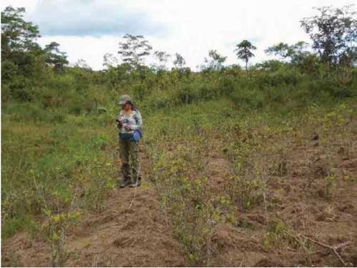 Parcela de coca verificada, población Central Santa Rosa, Municipio de Shinaota; (Foto: UNODC, Abril 2016)