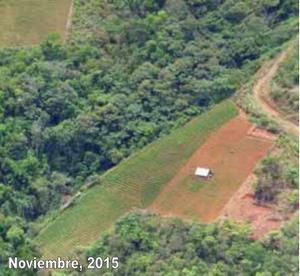 Las imágenes de satélite de la gestión anterior permiten comparar los cambios de superficie que han existido en un año. Este insumo permite también mejorar los criterios de interpretación visual, y la generación de claves de interpretación, al identificar los cambios que existen en una parcela de cultivo de coca.