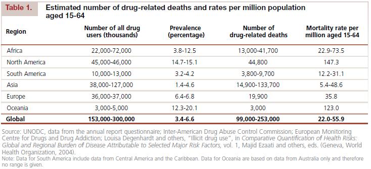 Chapter I of this year's World Drug Report provides an overview of recent trends and the drug situation in terms of production, trafficking and consumption and the consequences of illicit drug use in terms of treatment, drug-related diseases and drug-related deaths.