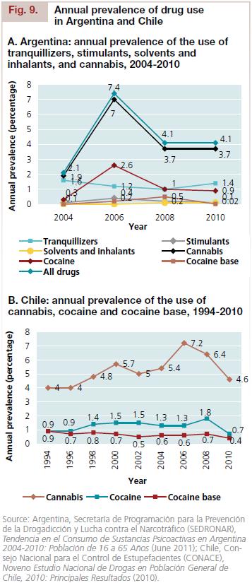 239. Argentina, Australia, Bolivia (Plurinational State of), Brazil, Canada, Chile, Germany, Indonesia, Italy, Mexico, Peru, the Philippines, Spain, the United Kingdom and the United States (UNODC, data from the annual report questionnaire and national drug survey reports). [Back]