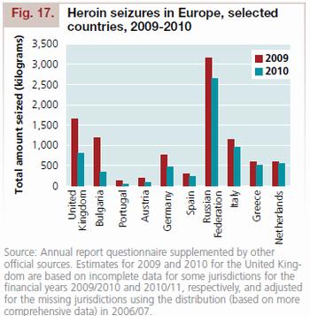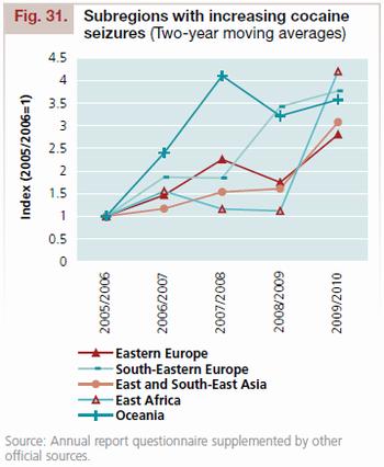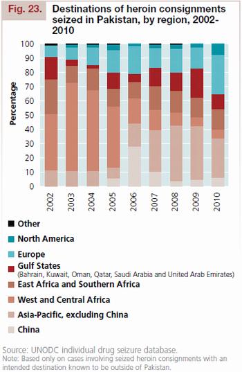 Although large quantities of heroin continue to be trafficked along the main Balkan route, leading from Afghanistan to Western and Central Europe via South-Eastern Europe, declining seizures were reported in most of the countries in those regions in 2010. However, the coastal markets of Africa are reporting increasing seizures, as are countries in South-East Asia. Whether this implies that traffickers are seeking alternative routes or that heroin use is on the increase in those places, the lack of available data makes it impossible to draw definitive conclusions. But one thing is clear: the opiate market continues to be extremely flexible and adaptable.