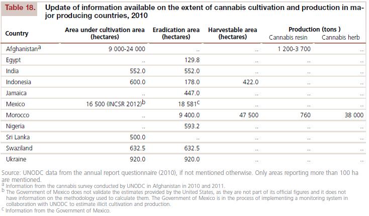 215. "Cannabis as an illicit narcotic crop: a review of the global situation of cannabis consumption, trafficking and production", Bulletin on Narcotics, vol. XLIX, Nos. 1 and 2 (1997), and vol. L, Nos. 1 and 2 (1998) (United Nations publication), pp. 45-84. [Back]
