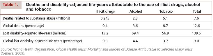 Back to BeginningAbout 230 million people, or 5 per cent of the world's adult population, are estimated to have used an illicit drug at least once in 2010. Problem drug users number about 27 million, which is 0.6 per cent of the world adult population. Throughout the world, illicit drug use appears to be generally stable, though it continues to be rising in several developing countries. Heroin, cocaine and other drugs kill around 0.2 million people each year, shattering families and bringing misery to thousands of other people. Illicit drugs undermine economic and social development and contribute to crime, instability, insecurity and the spread of HIV.