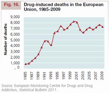 230. According to data from EMCDDA, heroin was involved in 80 per cent or more of the reported overdose cases in 17 European Union countries. [Back]