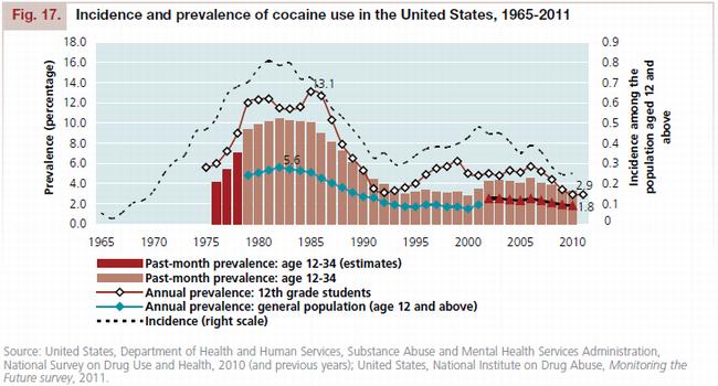209. "Past-month prevalence among males aged 12 and above in 2010", in United States, Department of Health and Human Services, Substance Abuse and Mental Health Services Administration, Results from the 2010 National Survey on Drug Use and Health: Detailed Tables (Rock-ville, Maryland, September 2011). [Back]