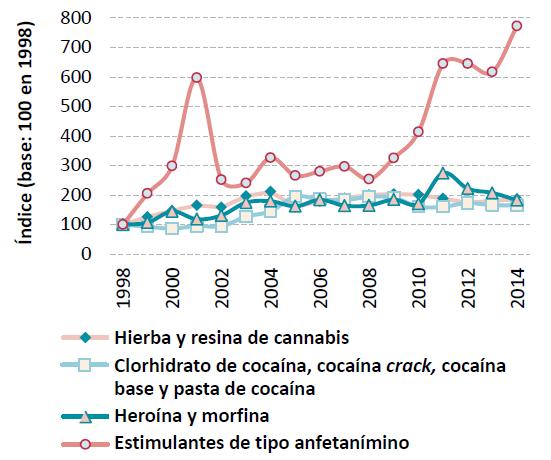 Tendencias de las incautaciones de drogas en todo el mundo, 1998-2014