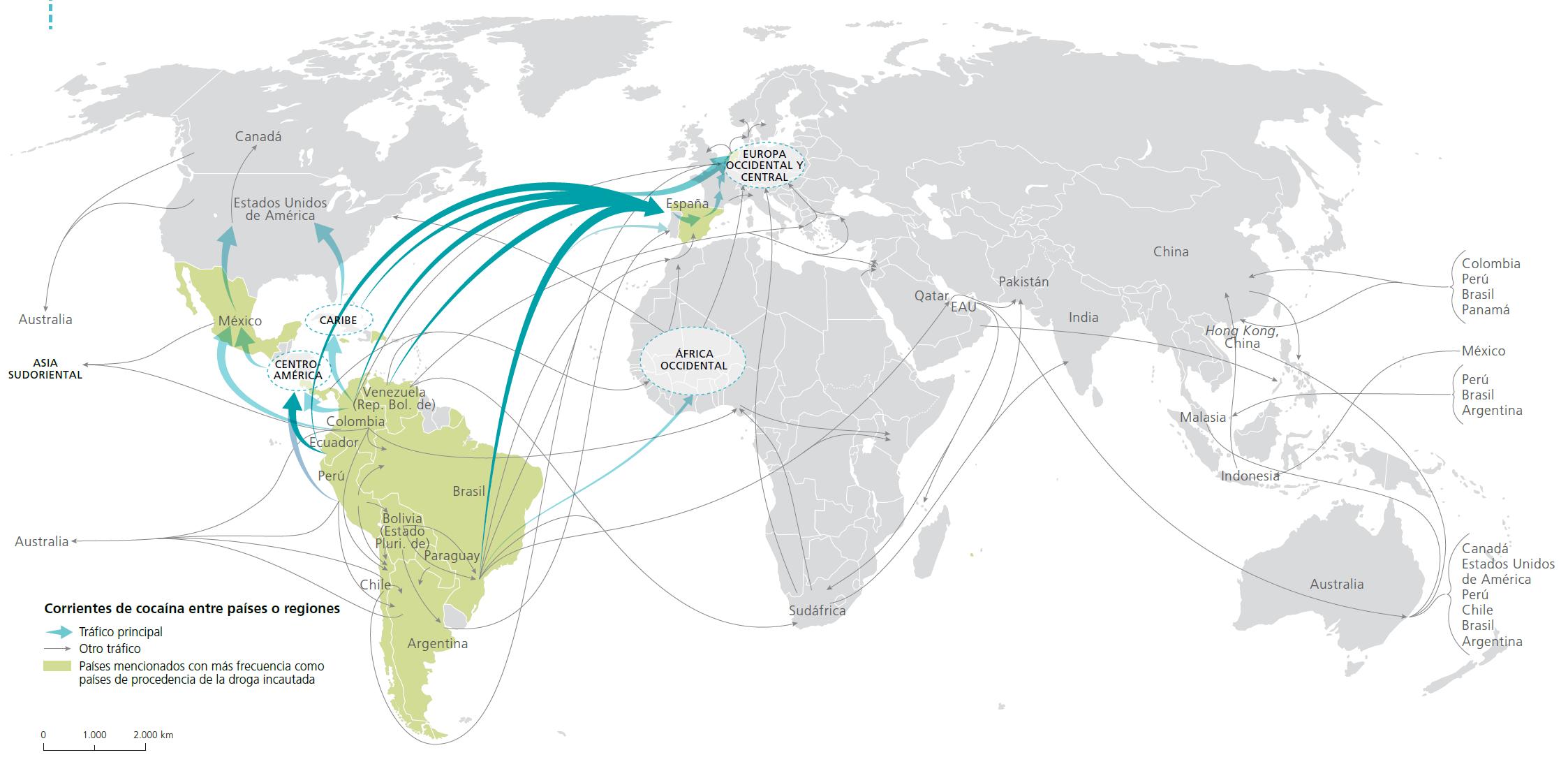 Es posible que esté recuperando importancia el tráfico de cocaína a través de Africa, y también hay indicios de que ha aumentado el tráfico de cocaína con destino a Asia, en particular Asia oriental y sudoriental y el Oriente Medio, ya que en dicho continente se ha triplicado la incautación de esa droga, que pasó de una media de 0,45 toneladas anuales en el período 1998-2008 a 1,5 toneladas anuales en el período 2009-2014. En Oceanía, el mercado de cocaína parece estar estabilizándose tras el rápido crecimiento experimentado en el decenio anterior.