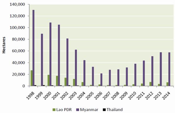 Figure 1: Opium poppy cultivation in Southeast Asia, 1998-2014 (Hectares)