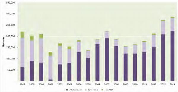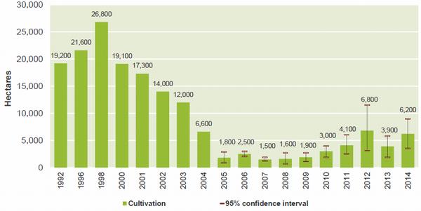 35. Source: LCDC. Eradication campaigns were conducted during and after the survey. For 2014, no eradication data was reported. [Back]