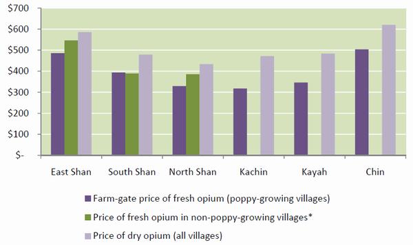 34. Source: LCDC, Provincial authorities survey. Due to the limited market for opium, a clear distinction between farm-gate, wholesale and retail prices could not be established. [Back]