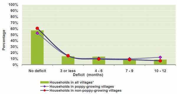 56. Estimated by the total area under cultivation, divided by the average hectares per household of all persons who have their own poppy field. The number of households where the inhabitants exclusively labour in another's poppy field were excluded. [Back]
