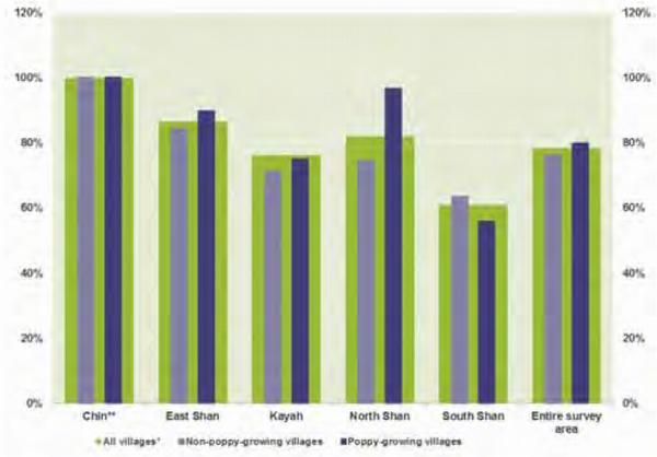 64. Average for all areas, including Shan State, Kachin and Kayah, weighted by area under poppy cultivation. NA=not applicable. [Back]