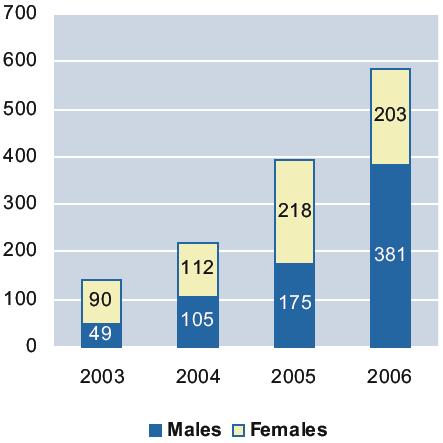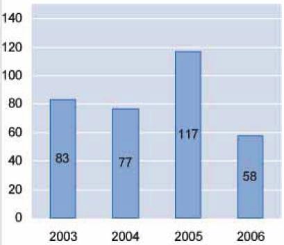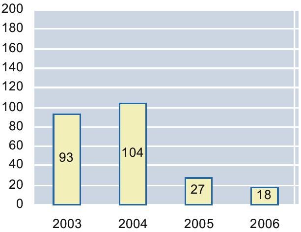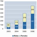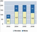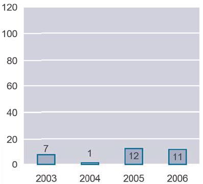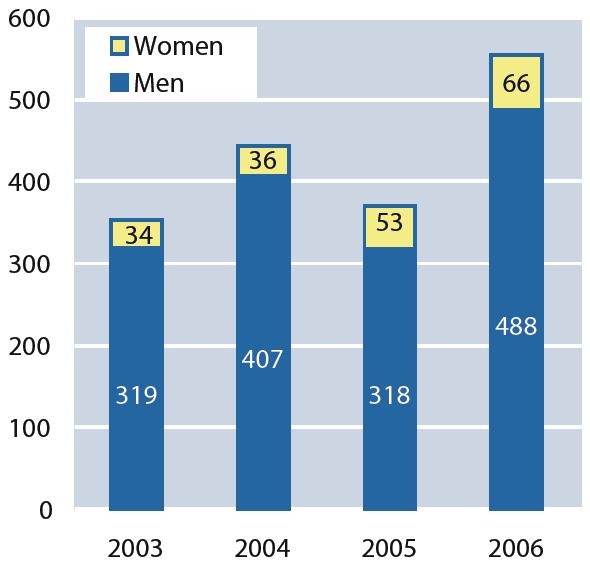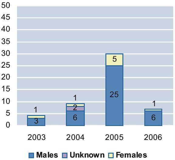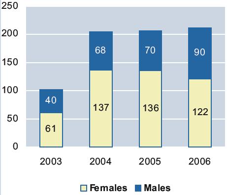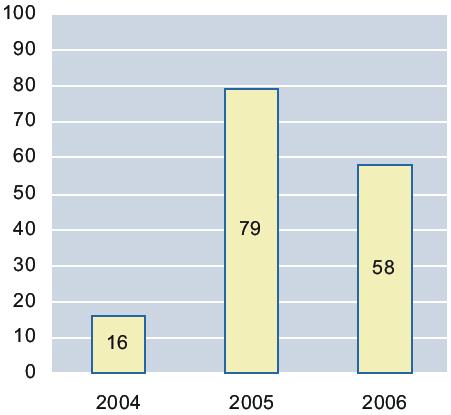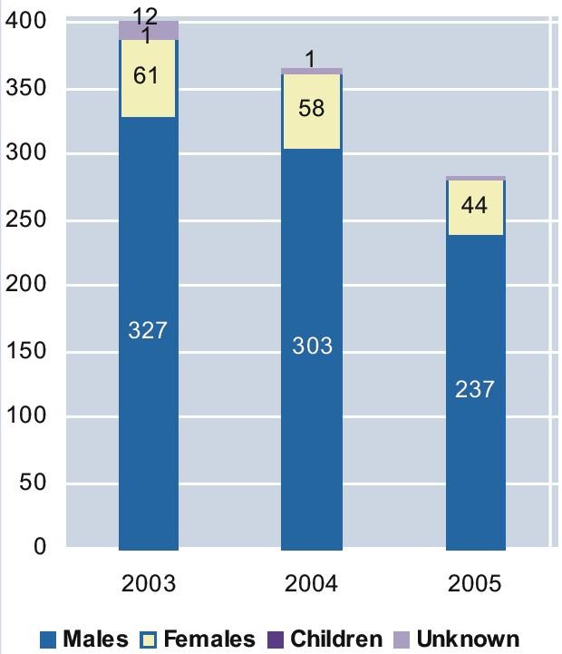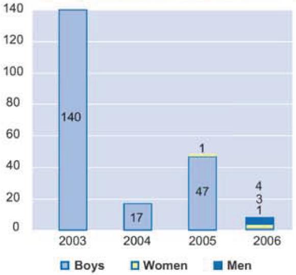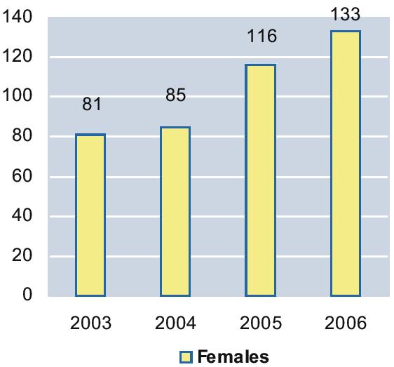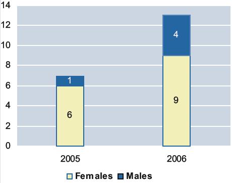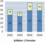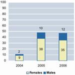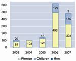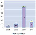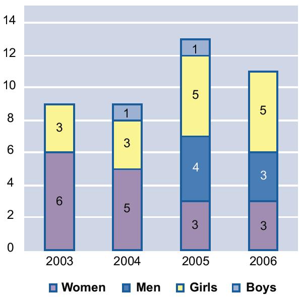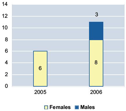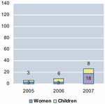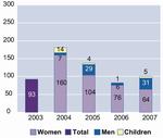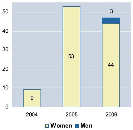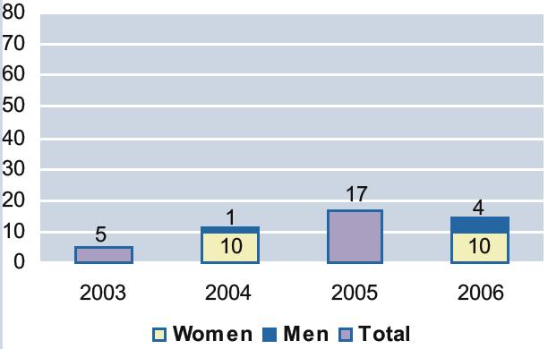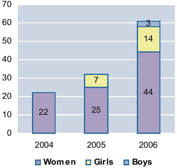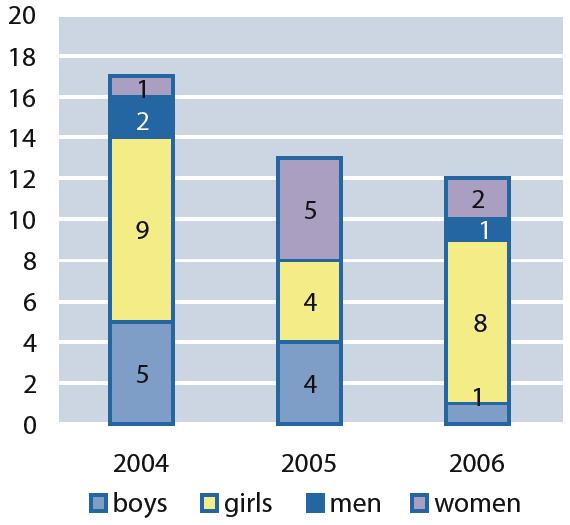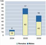 16. The number of countries reporting the profile of the victims according to age and gender increased (44 in 2003; 56 in 2004; 76 in 2005; and 61 in 2006) [Back]