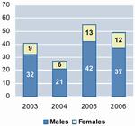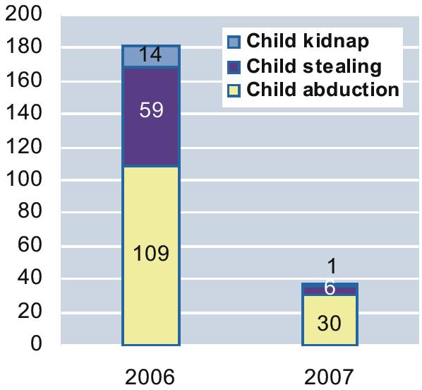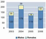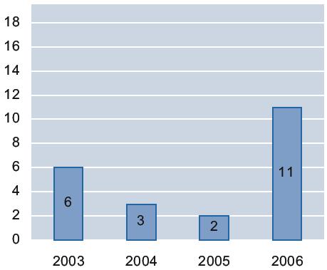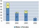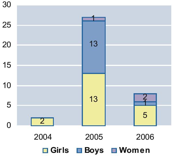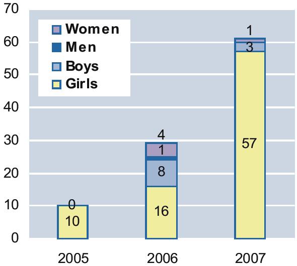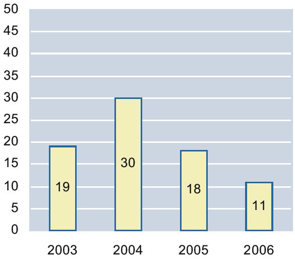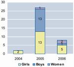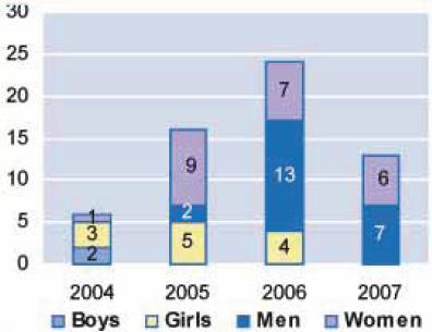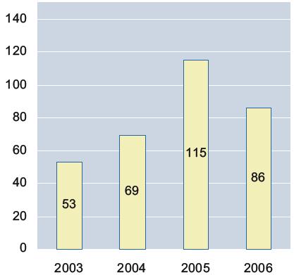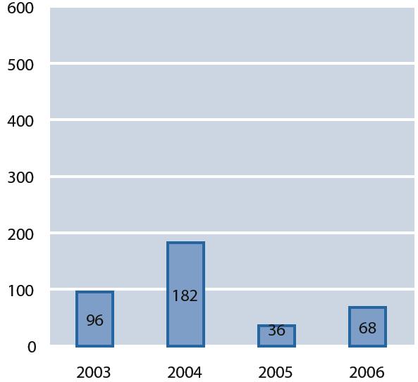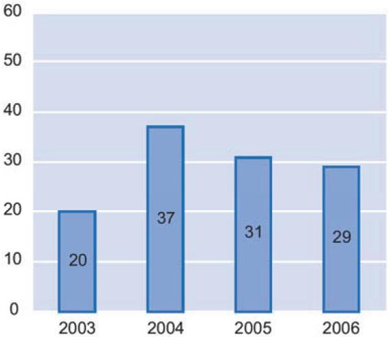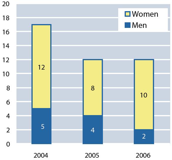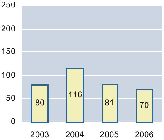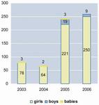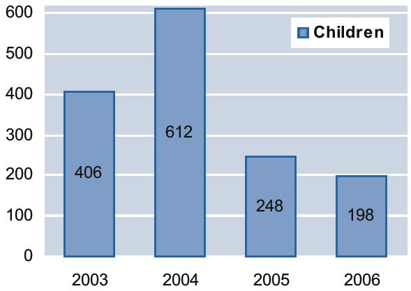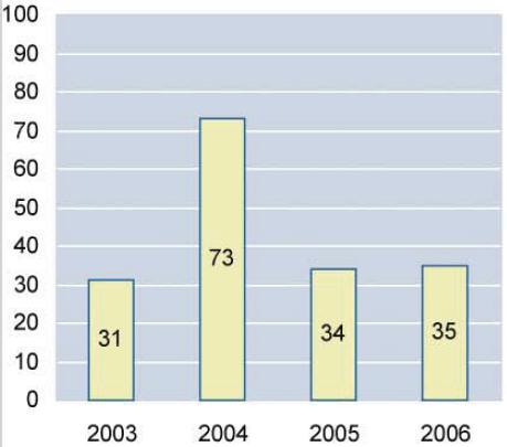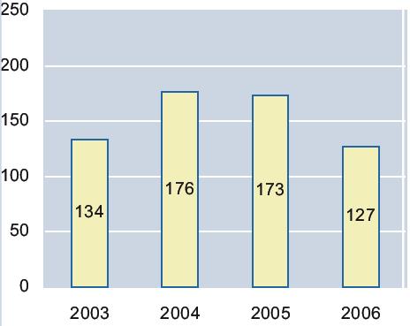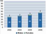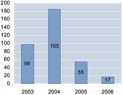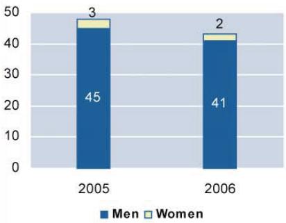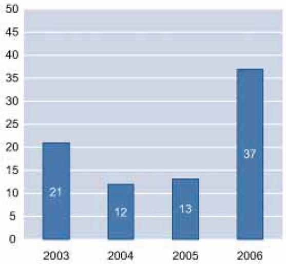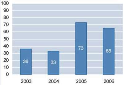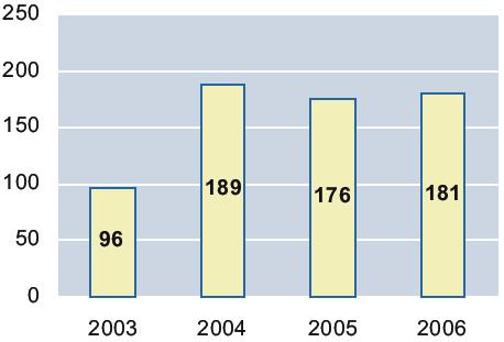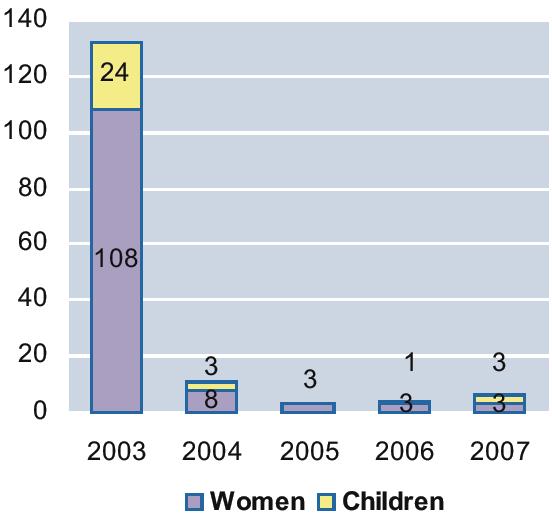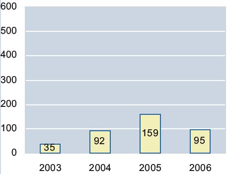16. The number of countries reporting the profile of the victims according to age and gender increased (44 in 2003; 56 in 2004; 76 in 2005; and 61 in 2006) [Back]