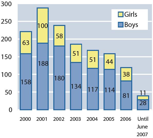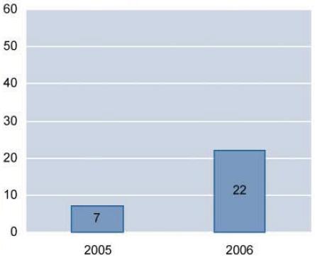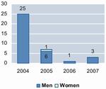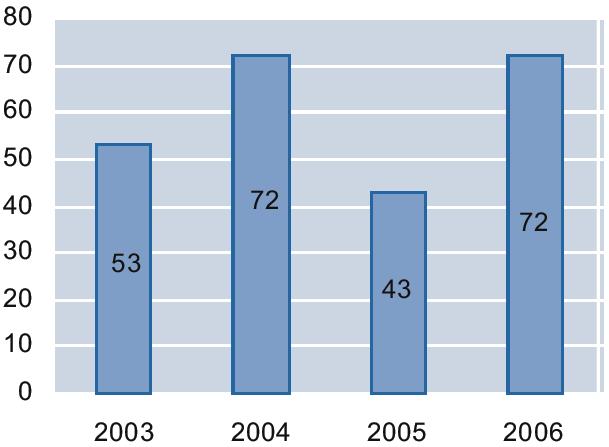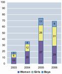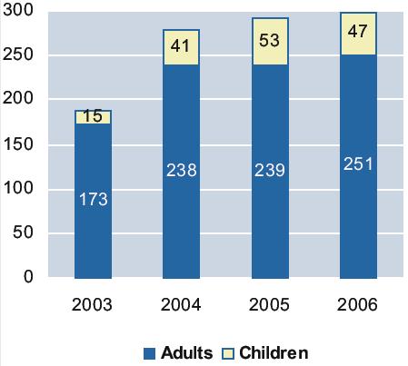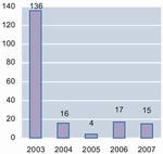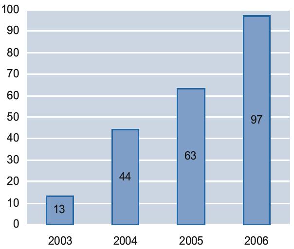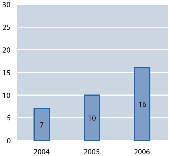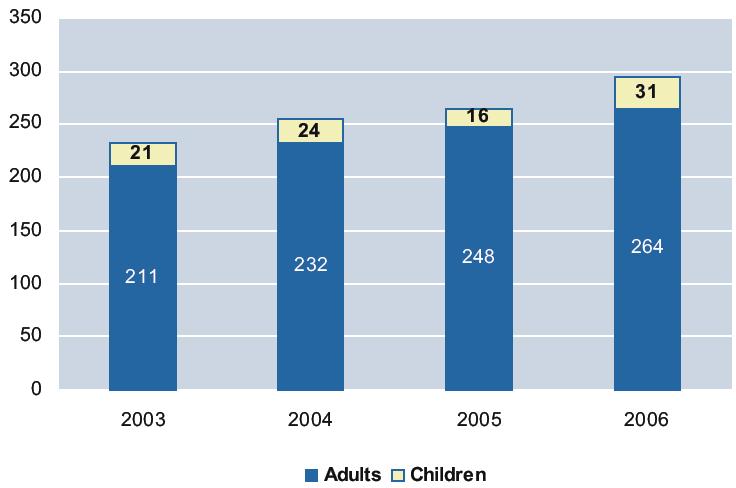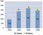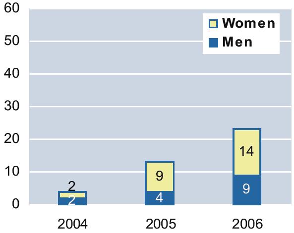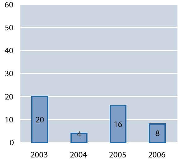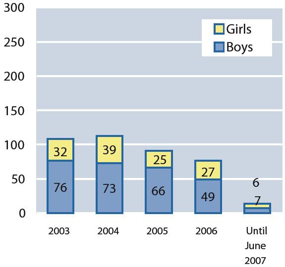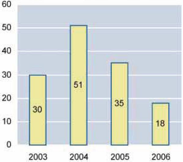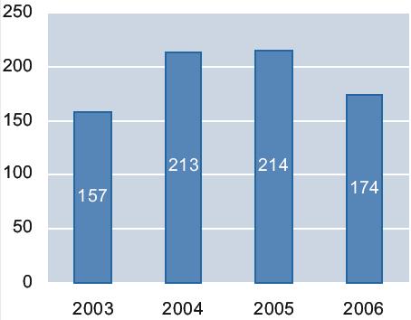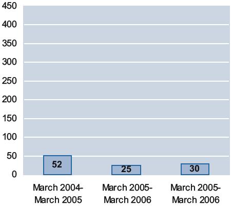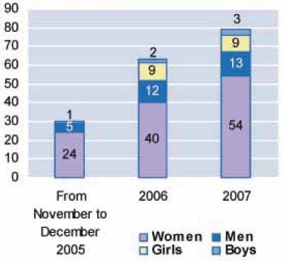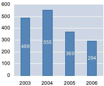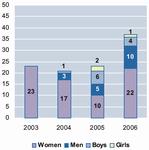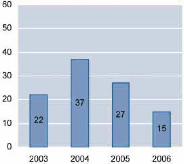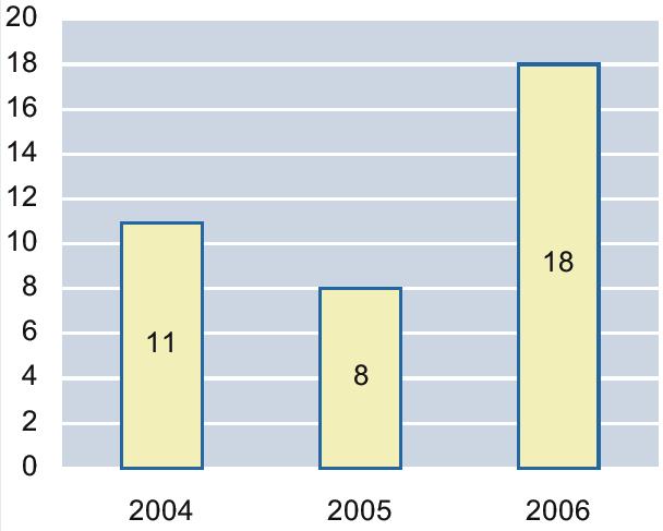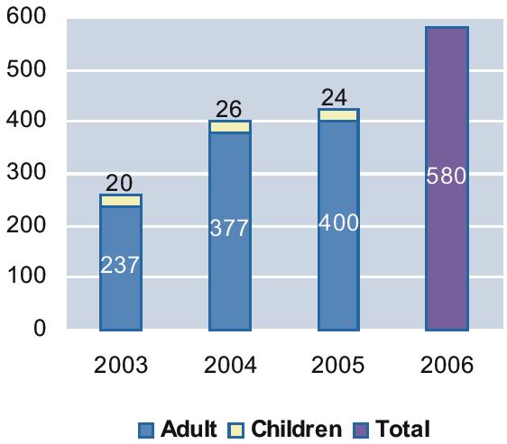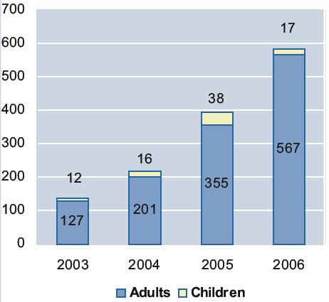16. The number of countries reporting the profile of the victims according to age and gender increased (44 in 2003; 56 in 2004; 76 in 2005; and 61 in 2006) [Back]