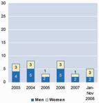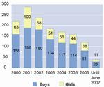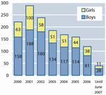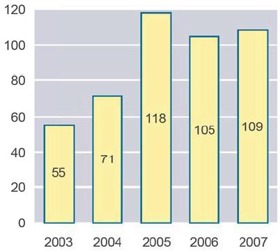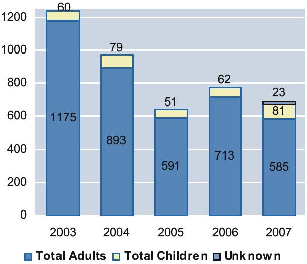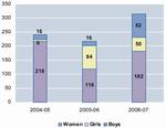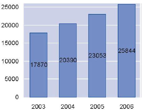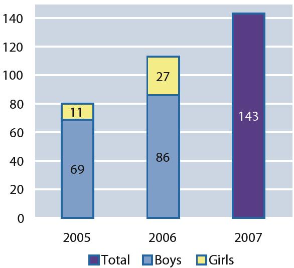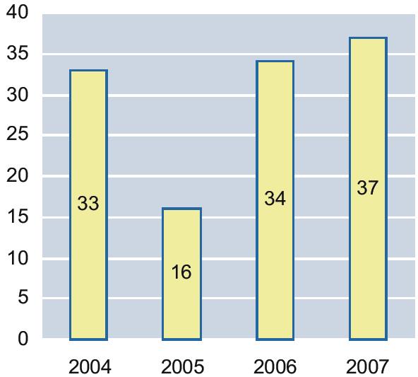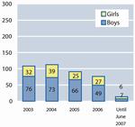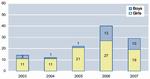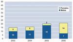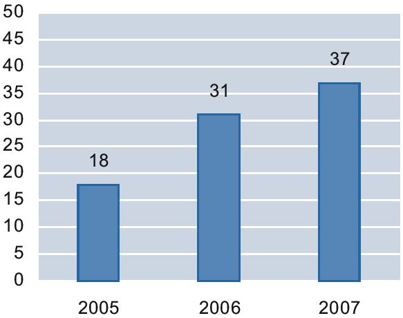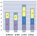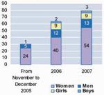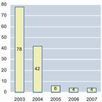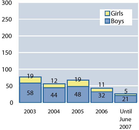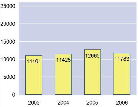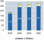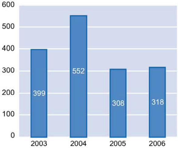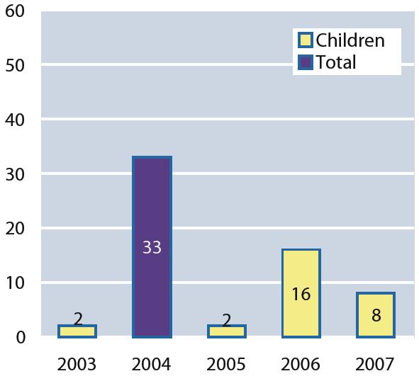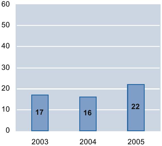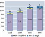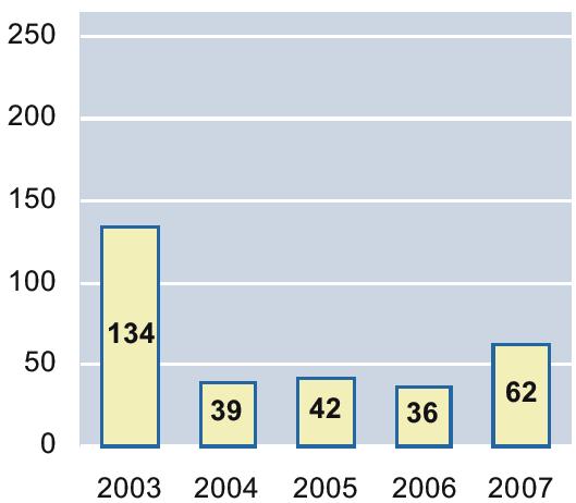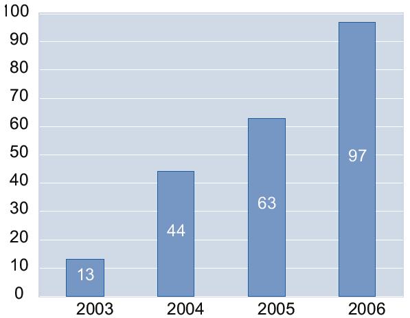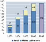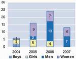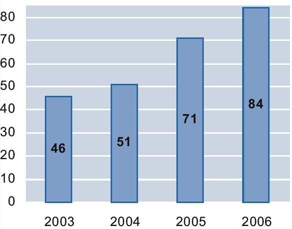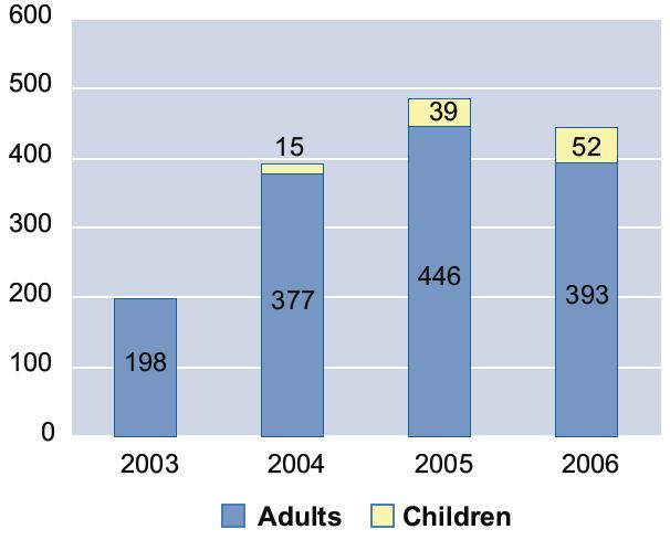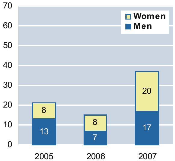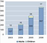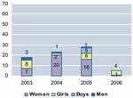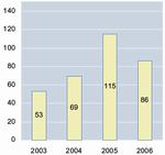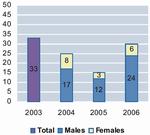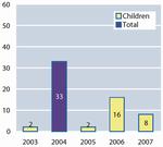 16. The number of countries reporting the profile of the victims according to age and gender increased (44 in 2003; 56 in 2004; 76 in 2005; and 61 in 2006) [Back]