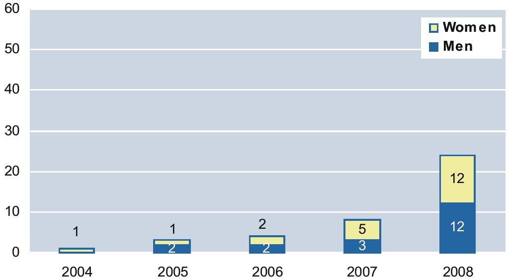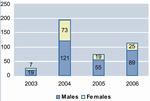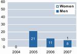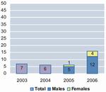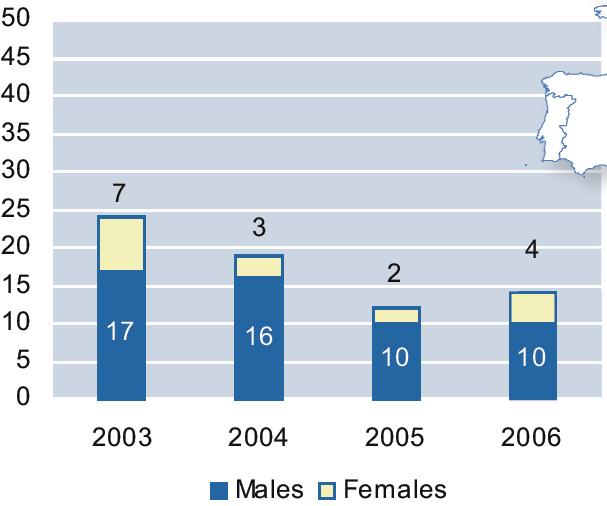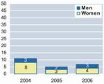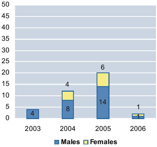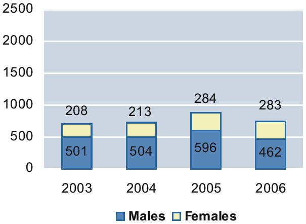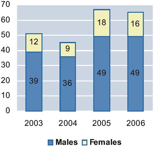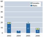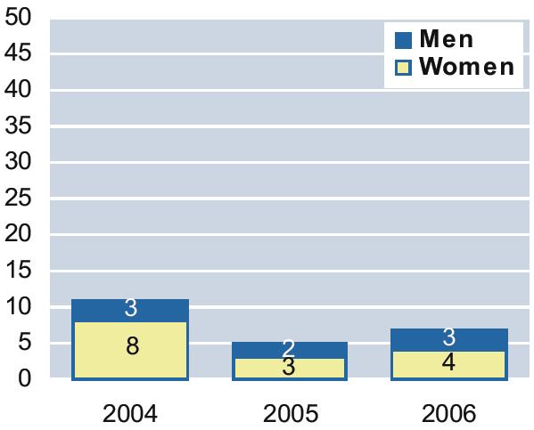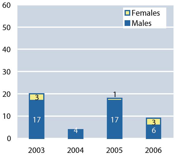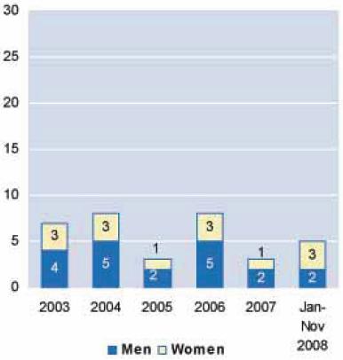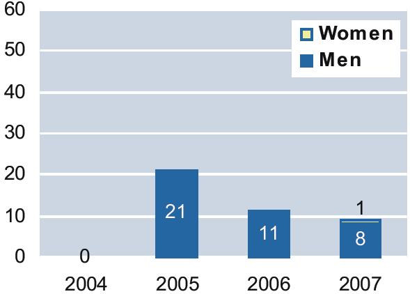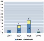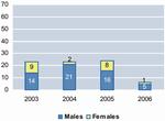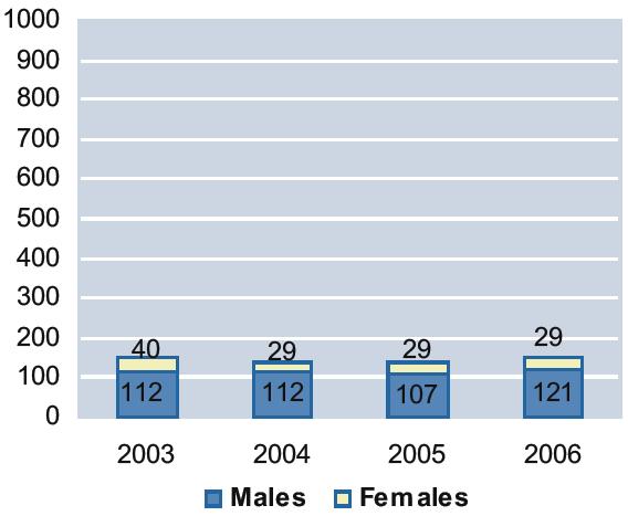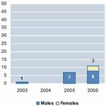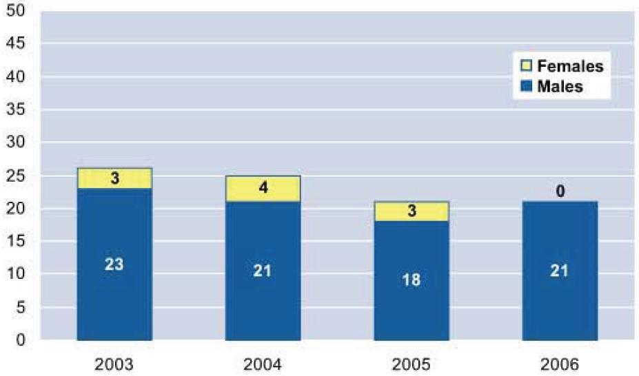 Fig. 380: Persons suspected of trafficking in persons in Sweden, by gender (2003-2006) Fig. 381: Persons convicted of trafficking in persons in Sweden, by gender (2003-2006) Source: National Council for Crime Prevention