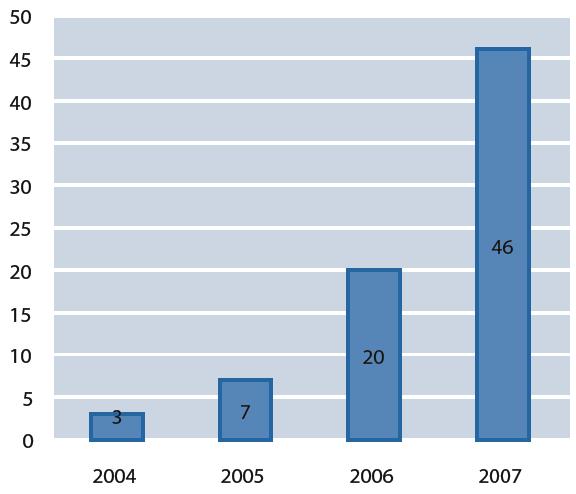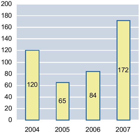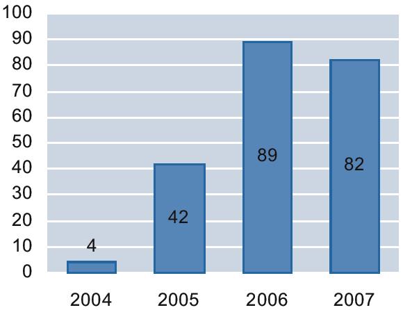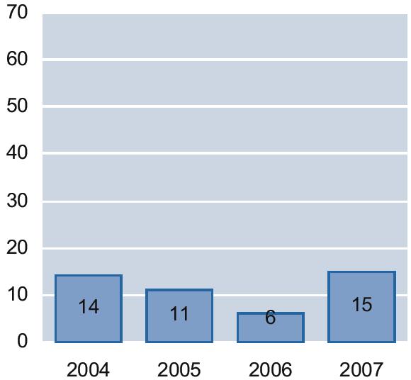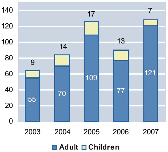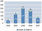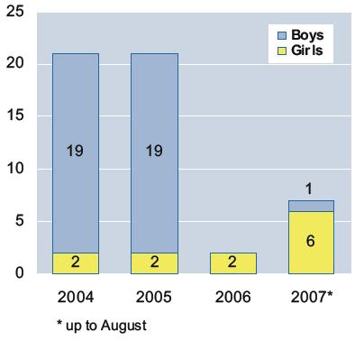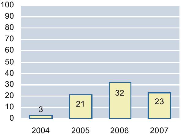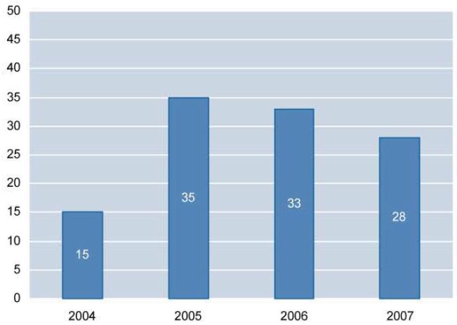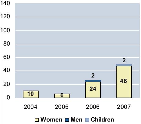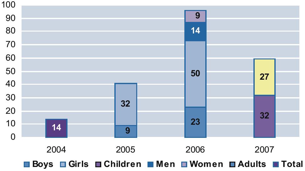 Fig. 394: Persons prosecuted for trafficking in persons offences in the United Kingdom (2004-2007) Fig. 395: Persons convicted of trafficking in persons offences in the United Kingdom (2004-2007) Source: United Kingdom Human Trafficking Centre