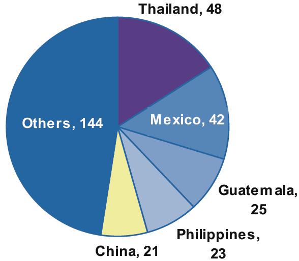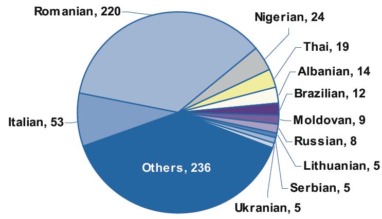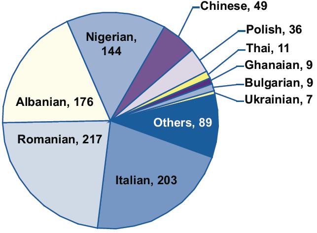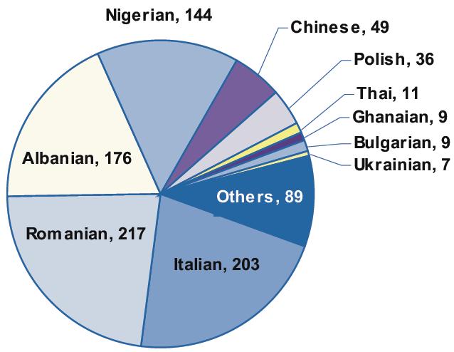 Fig. 379: Victims of trafficking in persons-related offences identified by State authorities in Spain, by citizenship (2005-2006) Source: Centro de Inteligencia contra el Crimen Organizado