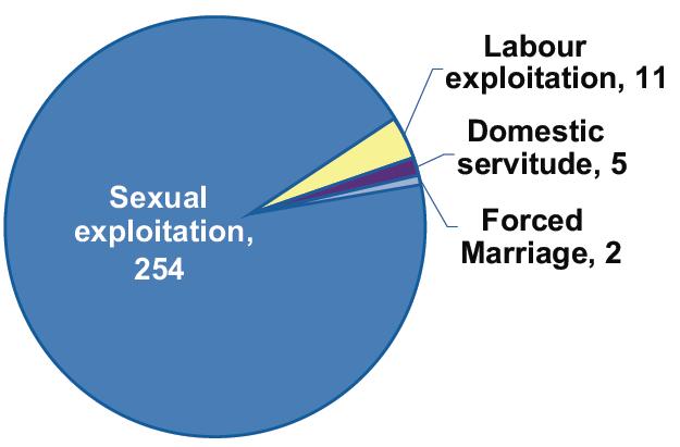 In 2006 and 2007, all identified of human trafficking were subjected to sexual exploitation as set out in the Sexual Offences Act 2003. None of the detected victims were trafficked for forced labour, domestic servitude or for the removal of human organs. According to the National Operations Pentameter 2, a total of 255 victims were rescued from a situation of trafficking for sexual exploitation, and five suspected victims of trafficking for force labour were recovered.