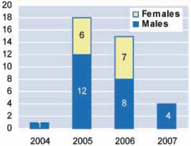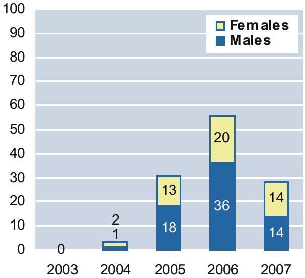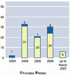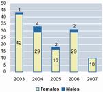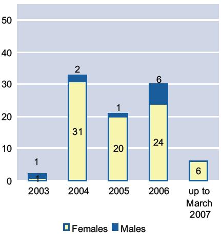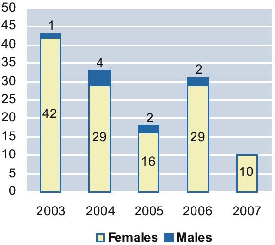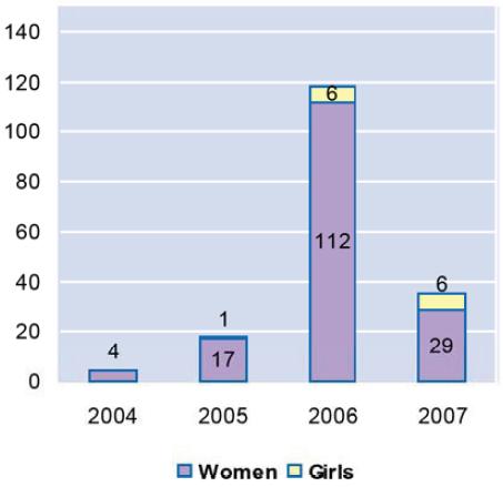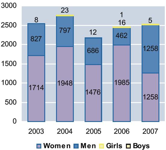 Fig. 369: Victims of trafficking in persons identified by State authorities in Slovakia, by gender (2003-2007) Source: Department of Trafficking in Human Beings