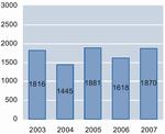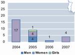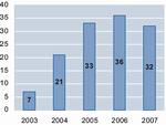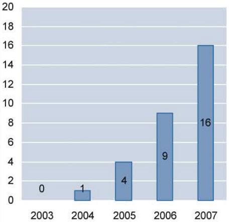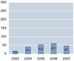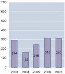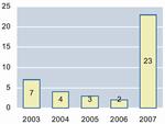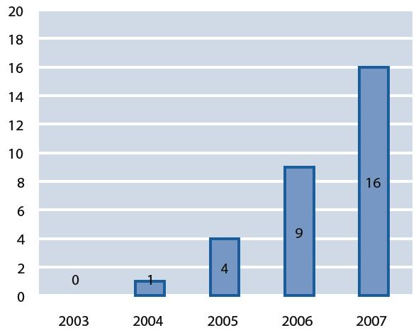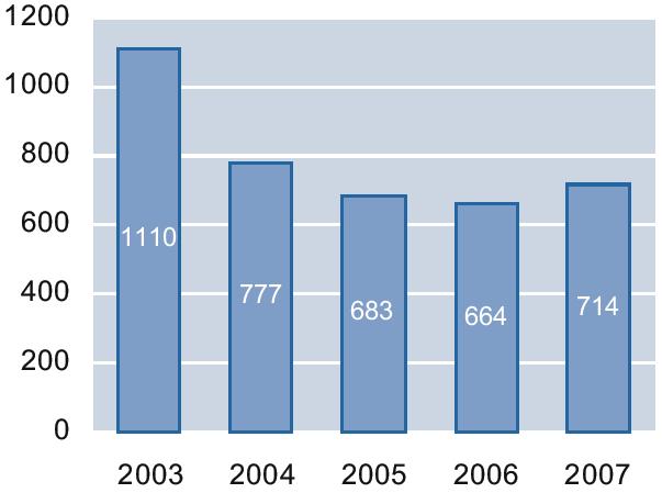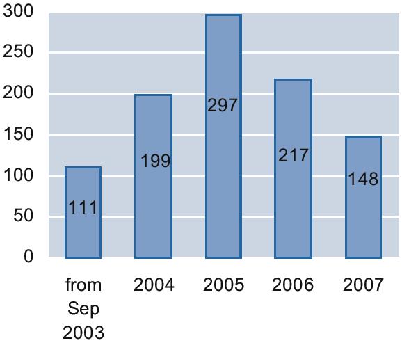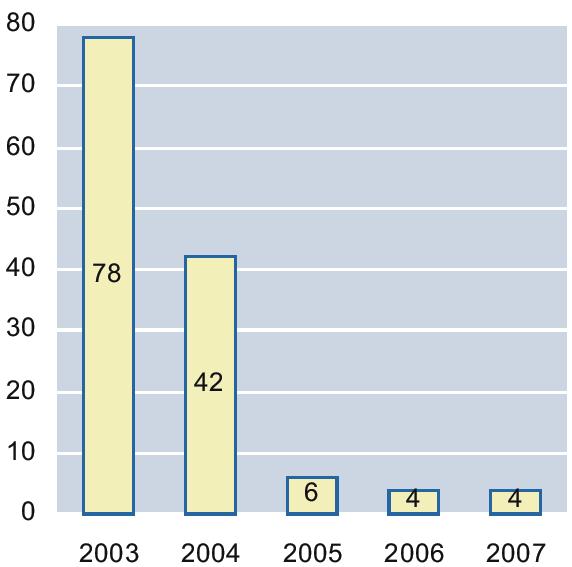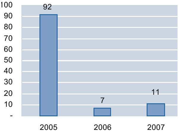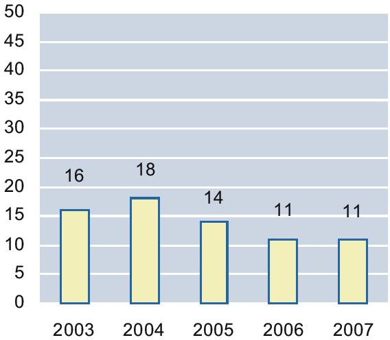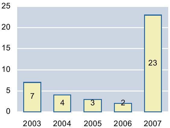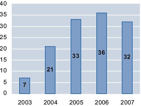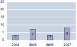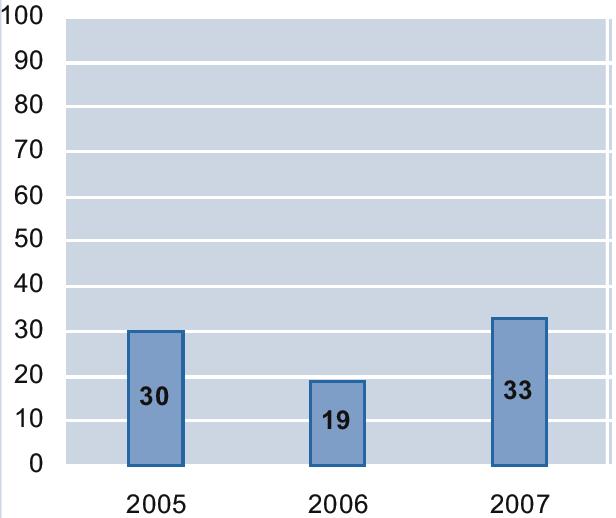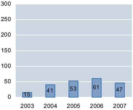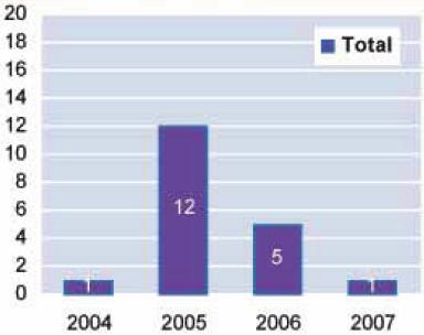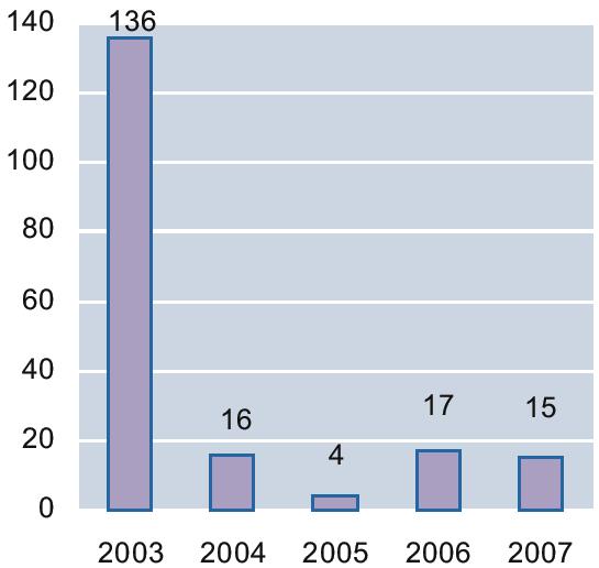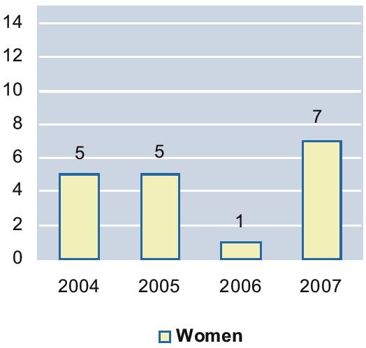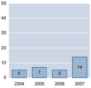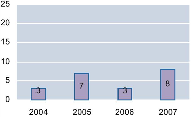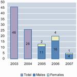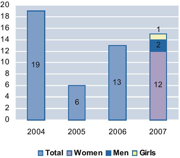 Fig. 386: Persons prosecuted for trafficking in persons in the FYR of Macedonia (2003-2007) Fig. 387: Persons prosecuted for the "organization of a group and urging for committing trafficking" in the FYR of Macedonia (2004-2007) Source: Ministry of Interior