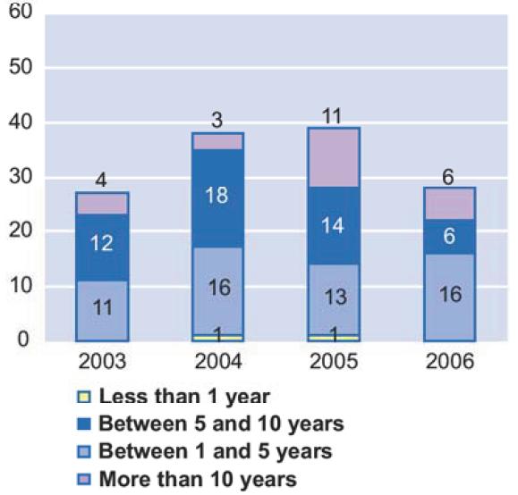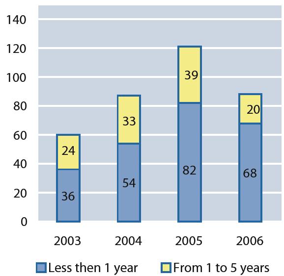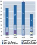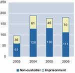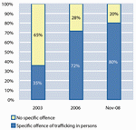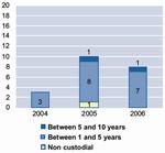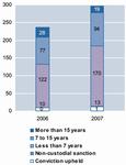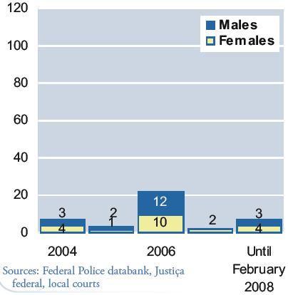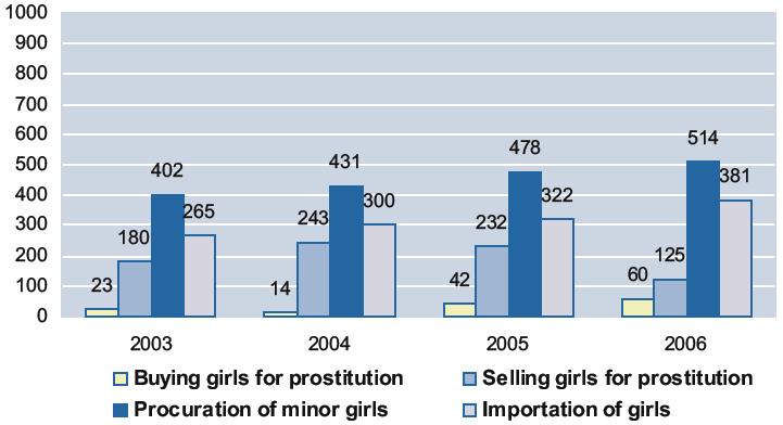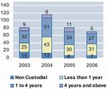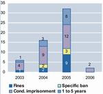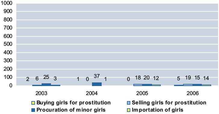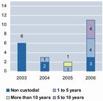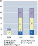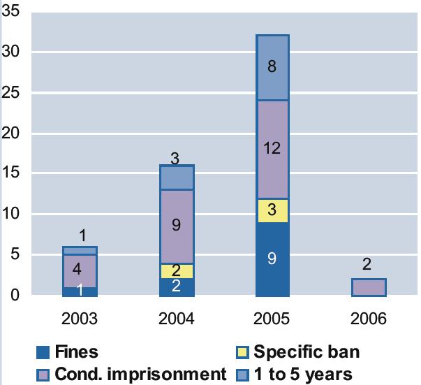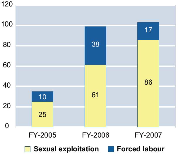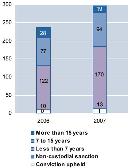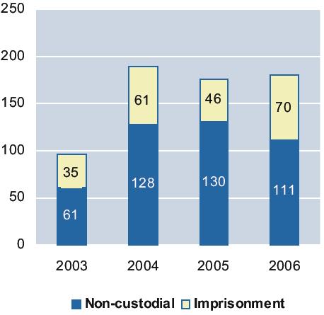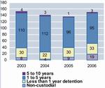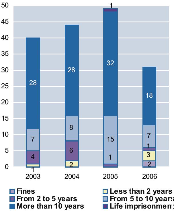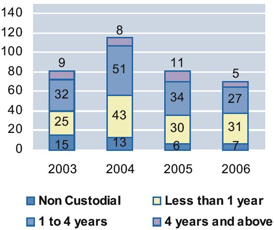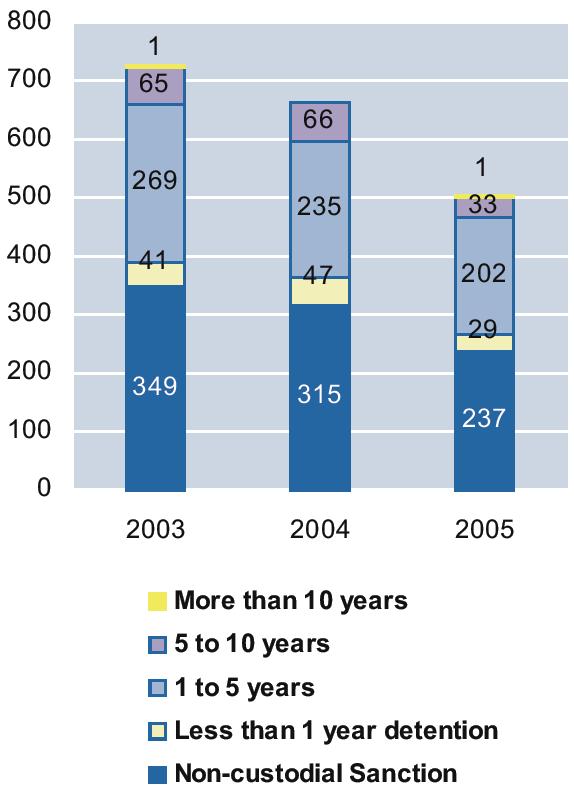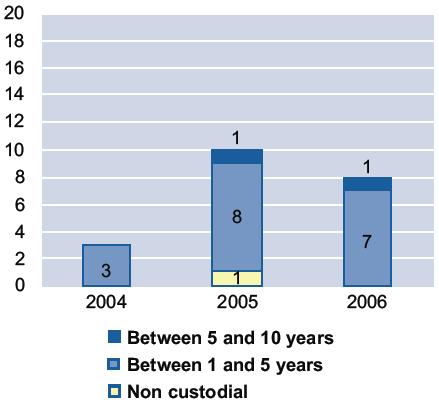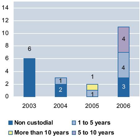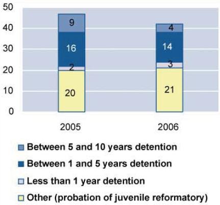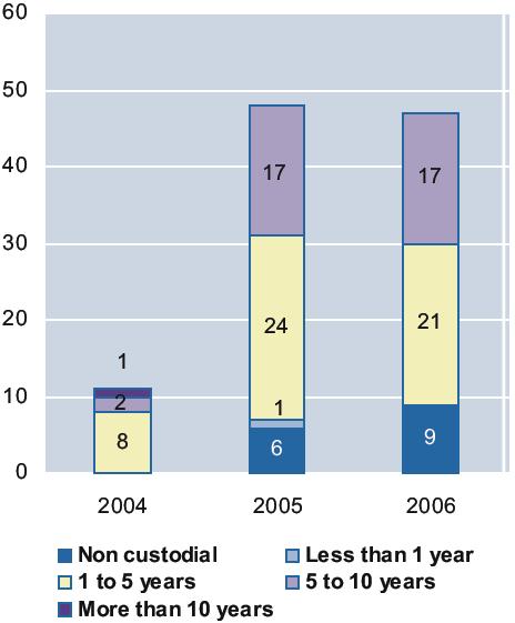 Of the convictions recorded during 2005-2006, 11 offenders were sentenced to two to four years detention, and six others were sentenced to more than four years. All were convicted of trafficking for sexual exploitation with the exception of one offender who was involved in trafficking for other purposes.